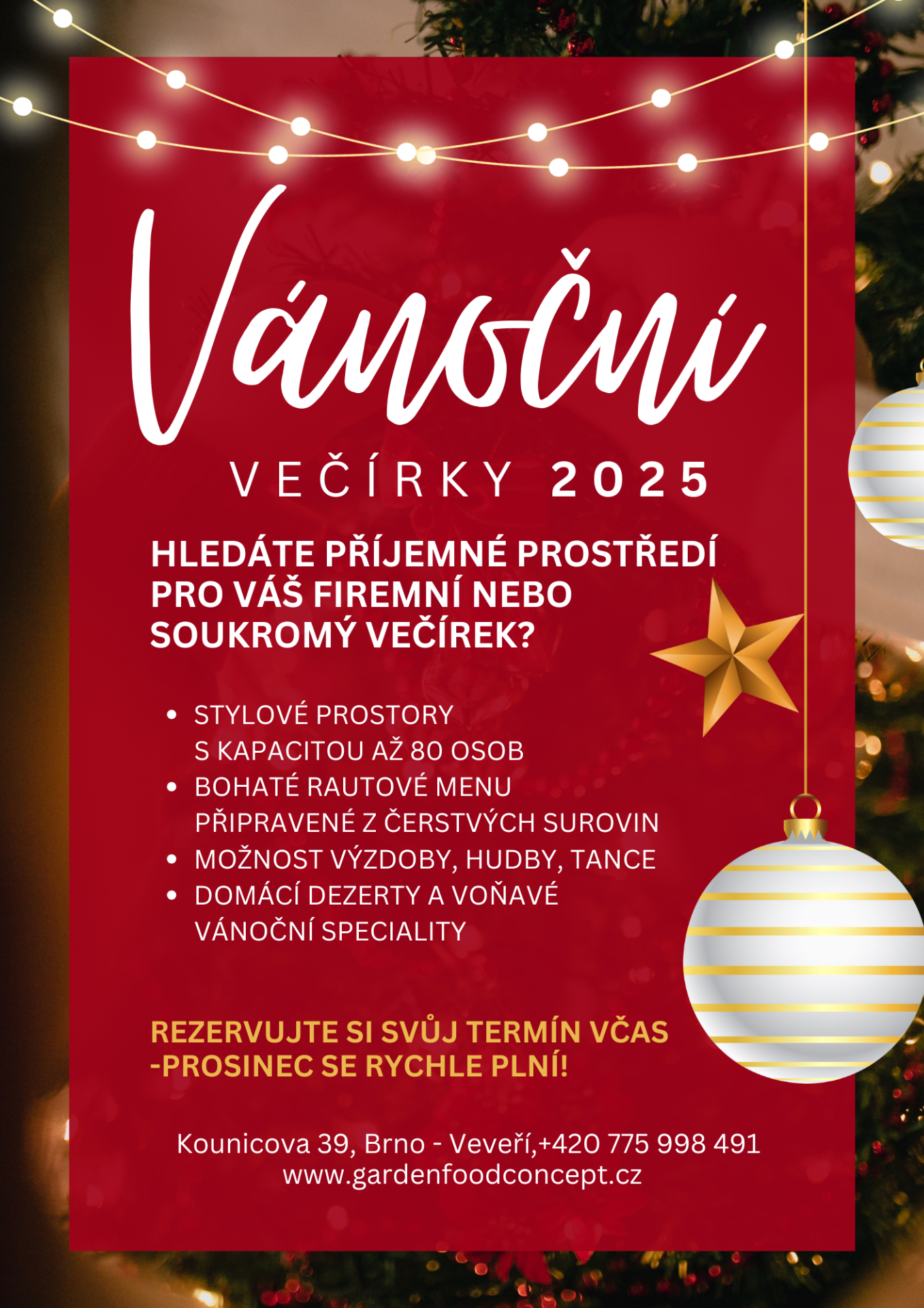 Užijte si společně večer plný skvělého jídla, pití a dobré zábavy. Vánoční večírky u nás mají tu pravou sváteční atmosféru.