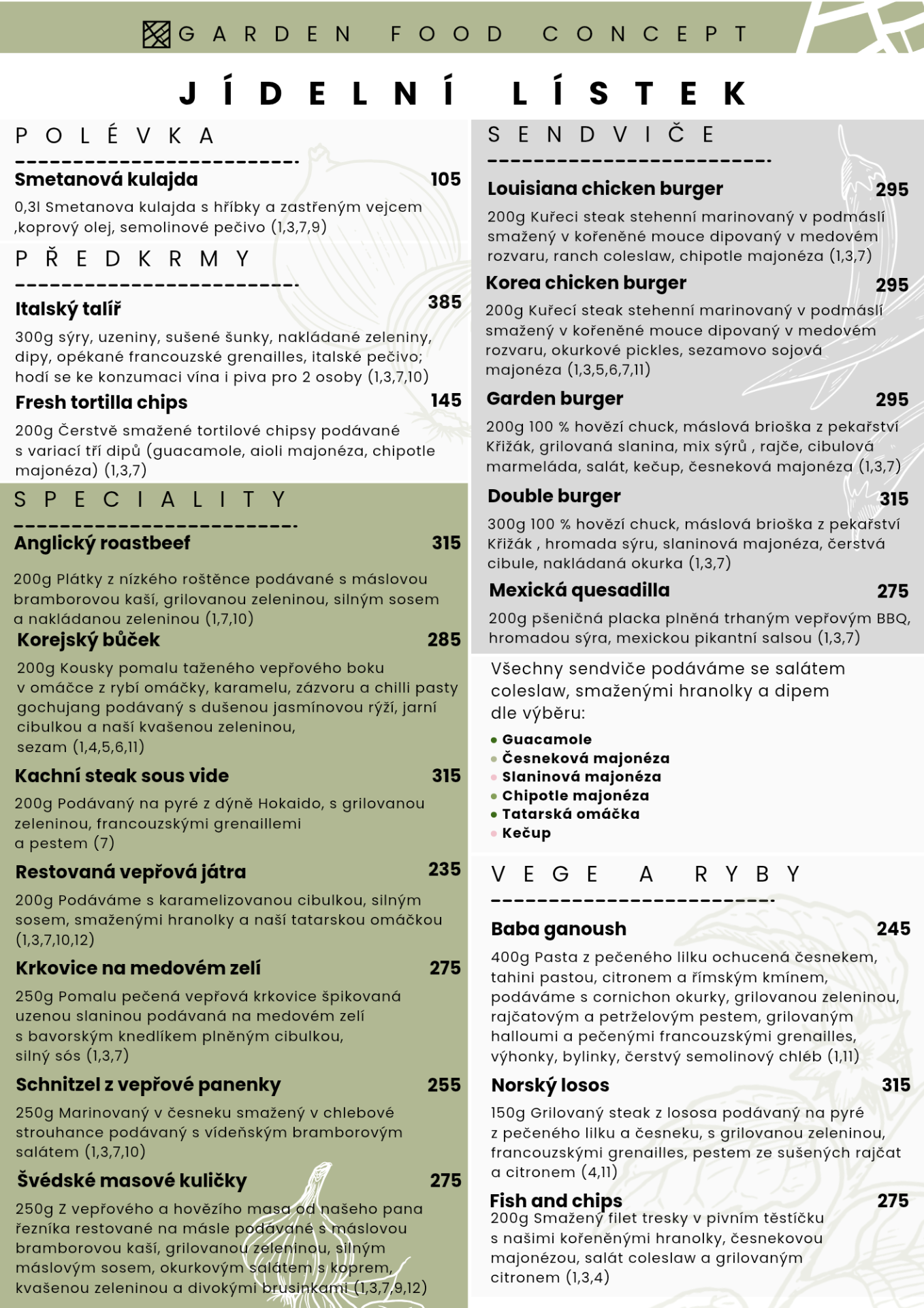 Večerní menu